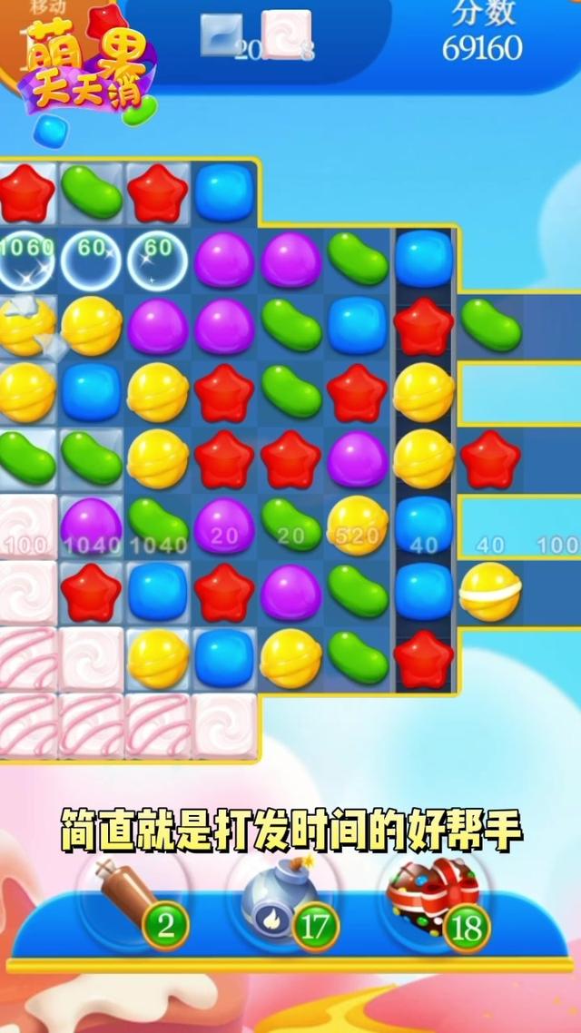 《萌果天天消》是一款完全免费的休闲消除游戏,不仅能消磨时光,还能锻炼玩家的反应力和手速。游戏中需要运用智慧不断积累分数,挑战性十足。独特的滚筒式消除界面带来与众不同的视觉体验,比传统平面消除更加炫酷刺激。可爱的水果元素和丰富的道具系统让游戏充满乐趣,三分钟就能让你爱上这款魔性小游戏。无论是等车还是休息间隙,随时随地都能享受消除带来的快乐。