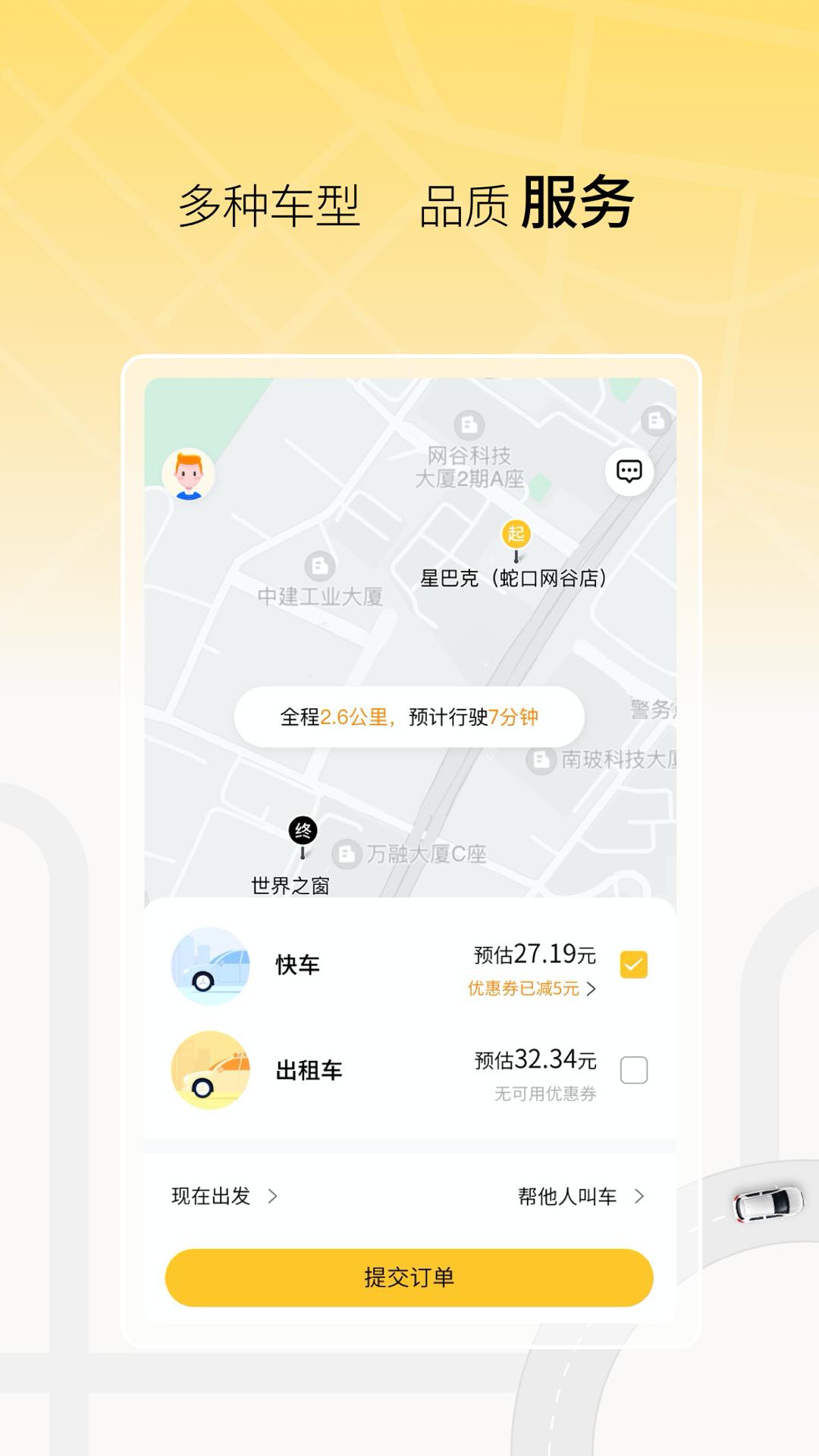 - 专车服务:为用户提供高端、舒适的专车出行体验,所有车辆均为新能源车型,配备专业司机团队,确保每一次出行都安全可靠。同时提供多种车型选择,满足不同场景的出行需求。