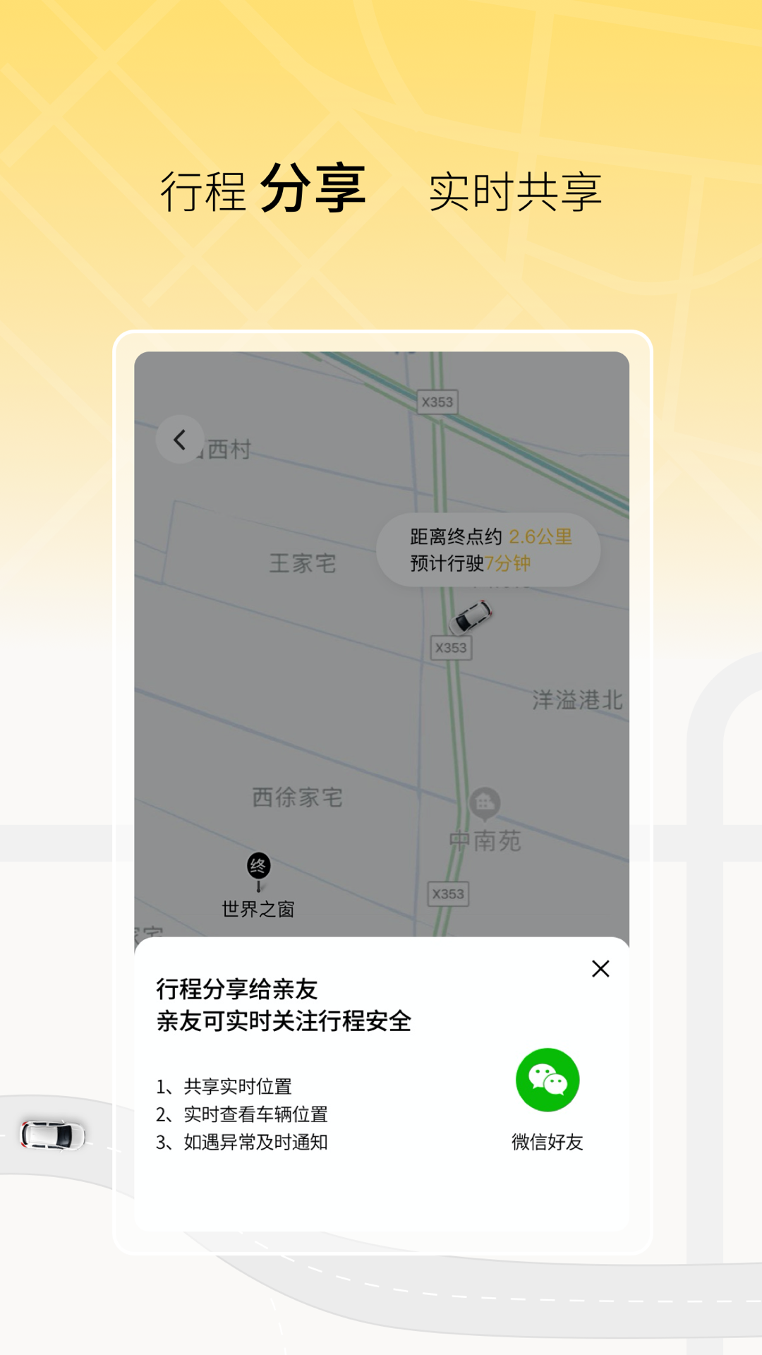 1、新增行程分享功能:用户可将实时行程信息分享给亲友,让家人朋友随时掌握您的出行动态,提升出行安全感。
