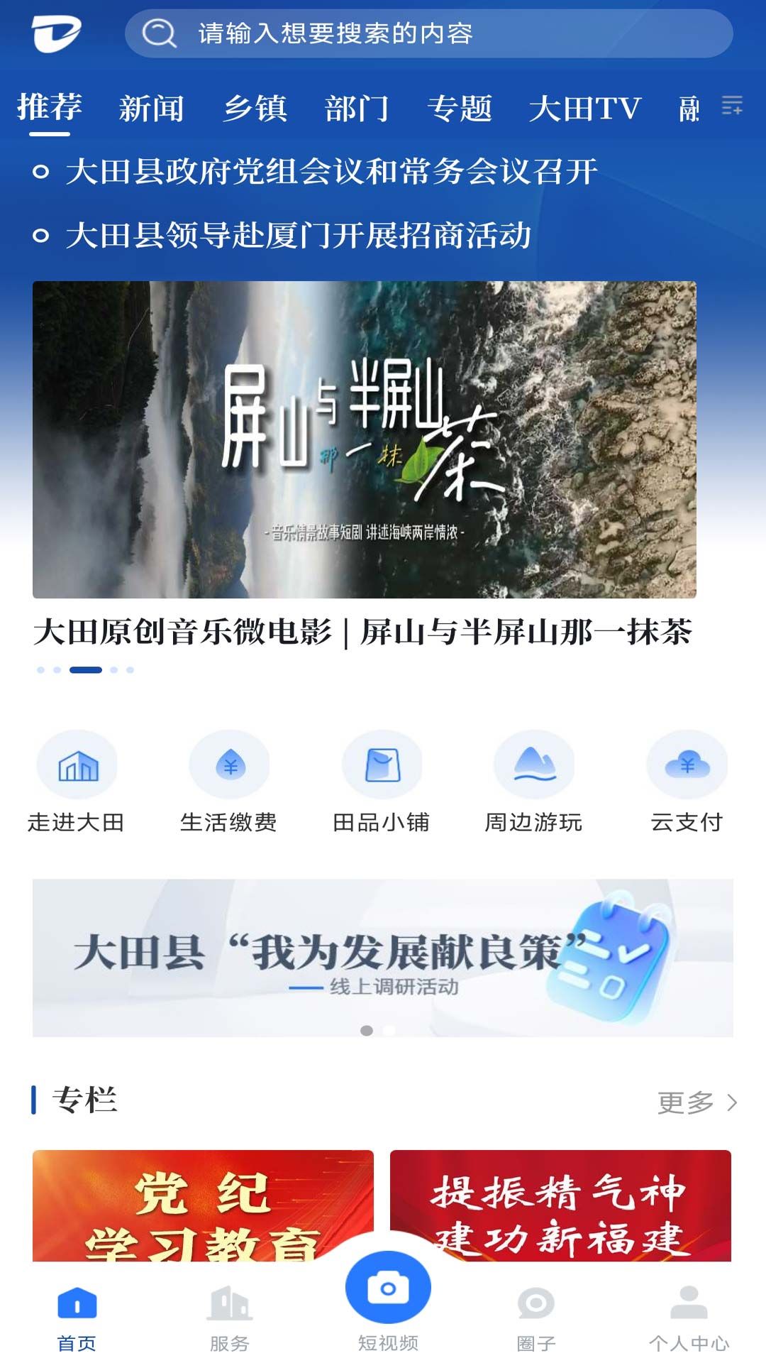 1、首页设计融合大田县特色元素,通过精美的图片和生动的文字展示本地文化活动,增强平台的亲和力和用户粘性。
