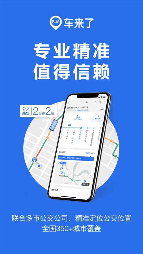 车来了深耕公交出行服务领域12年,服务覆盖全国470+个城镇,为超过3.1亿用户提供便捷的实时公交查询服务。