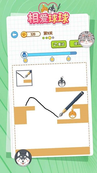 在这个充满童趣的游戏世界里,两颗可爱的球球因为意外而失散了。玩家需要运用智慧,通过绘制线条来帮助它们重新相遇。《相爱球球》是一款融合了智力挑战与休闲娱乐的创意游戏,每个关卡都设置了不同的场景和障碍。你将遇到萌萌的猫球和活泼的狗球,它们需要你的帮助才能碰撞出爱的火花。游戏画面清新可爱,音效活泼有趣,适合各个年龄段的玩家。随着关卡的推进,难度会逐渐提升,但始终保持着轻松愉快的游戏氛围。