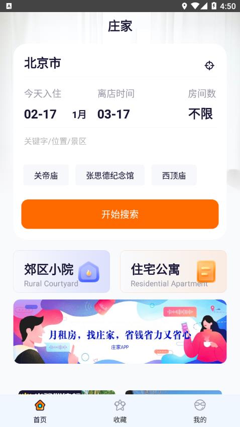庄家App以创新的"短租房"、"短租宅基地"、"月租房"、"短租民宿"等特色服务为核心竞争力,打造了行业领先的短租预订平台。平台汇聚了全球优质房源,为用户提供丰富多样的住宿选择,满足商务出行、旅游度假等不同场景需求。通过大数据分析和智能算法,平台能为每位用户推荐最适合的个性化住宿方案。对于房东而言,平台提供全方位的保障措施,包括租金托管、信用评估等,确保房屋分享过程安全可靠。同时,专业的运营团队会为房东提供房屋管理建议,帮助提升出租收益。
