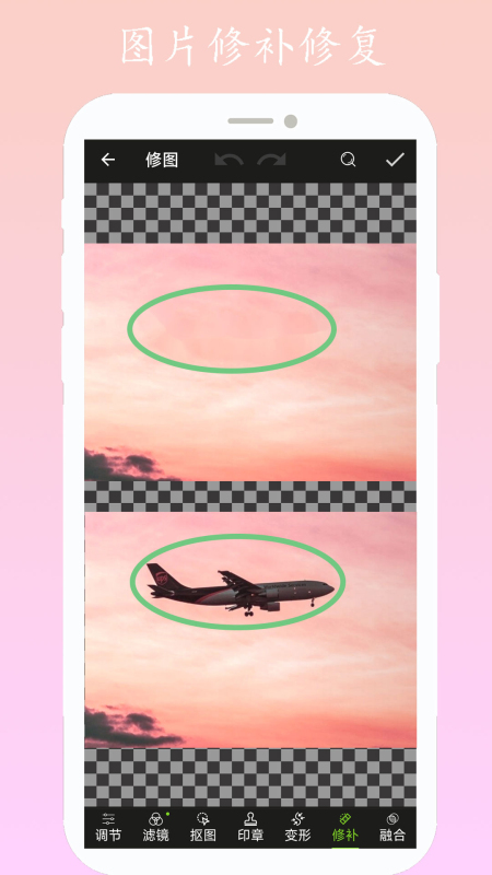 8、【修补】配备智能修复工具,可快速去除图片中的杂质和不需要的元素。采用内容识别技术,修复后的区域能与周围环境自然融合,保持图片整体协调性。