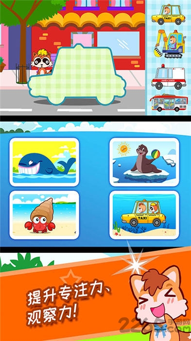 基础知识,将生活常识、数字认知、颜色识别等基础知识融入游戏场景,让孩子在不知不觉中掌握实用技能。