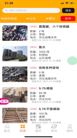 2.源源不断的二手资源,能够让用户在这里挑选自己适合的进行下单。平台汇聚了全国各地的废品供应商和回收商,资源种类丰富且更新频繁。无论是常见的金属废料还是特殊工业废品,用户都能在这里找到合适的货源,满足不同规模的生产需求。