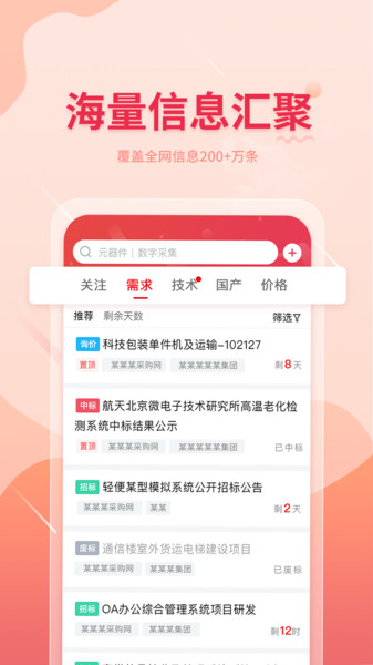 晓息网络app是一款专业的网络信息服务平台,致力于为用户提供全面、精准的行业数据服务。平台汇聚了200多万条商业信息,覆盖企业商标、技术专利、市场价值等核心领域,通过智能算法实现信息的精准匹配与推送。无论是招投标信息查询、技术参数对比,还是国产替代方案寻找,都能在这里获得一站式解决方案。平台特别设计了个人需求配置功能,支持消息通知、关注标签管理等实用特性,确保用户不错过任何重要商机。其创新的优势资源匹配系统,能够帮助企业在海量信息中快速找到最优合作伙伴,真正实现"让采购更简单,让市场更容易"的商业愿景。