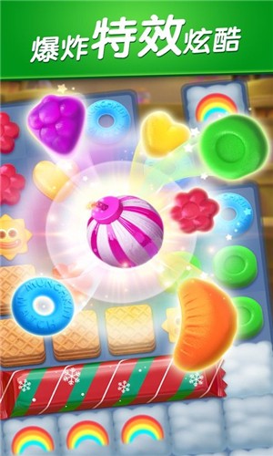 1、炫酷的爆炸,把糖果进行组合,获得道具消除一大片。游戏中的特效华丽震撼,每一次消除都能带来视觉上的享受,让玩家感受到满满的成就感。