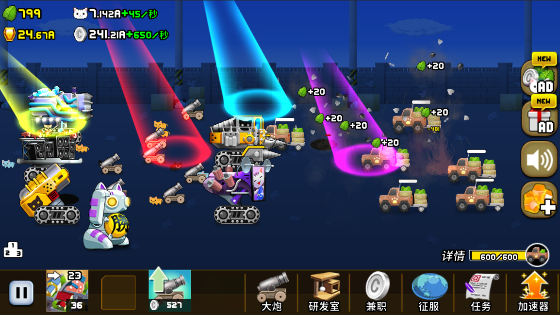 即使在关闭状态下,依然会持续收集猫薄荷/猫咪/硬币资源的一款游戏。