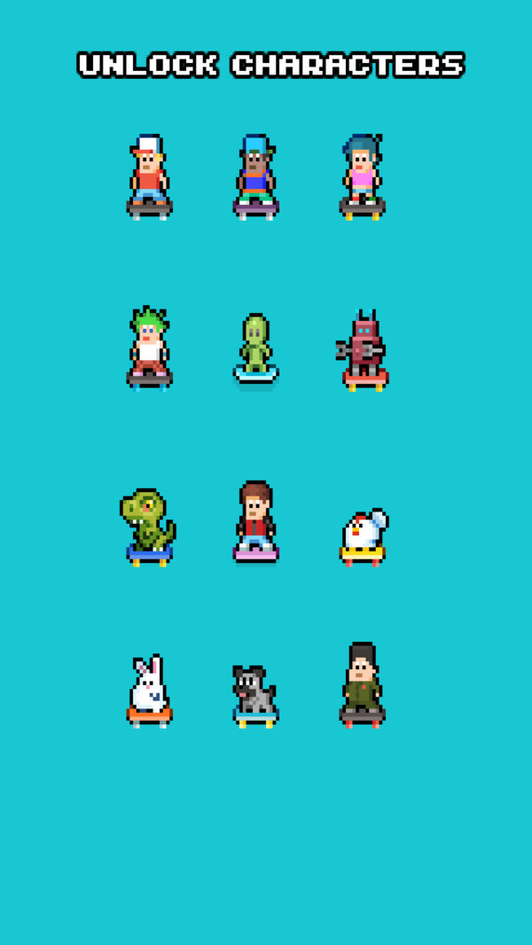 游戏提供了多样化的技巧系统,玩家可以在公园的长椅、栏杆等障碍物上施展各种华丽动作。收集系统包含数十个风格各异的可爱角色,每个角色都有独特的造型和特点。全球排行榜功能让你可以与世界各地的玩家一较高下,争夺最佳溜冰选手的称号。游戏采用复古像素艺术风格,色彩鲜明且充满活力,为玩家带来独特的视觉体验。操作简单易上手,但想要精通各种高难度技巧仍需不断练习。