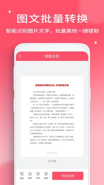 拍照图片智能识别提取,相册图片批量处理,更加方便快捷。支持多语言混合识别,自动分段处理,保持原文排版格式,让文档数字化变得轻松简单。