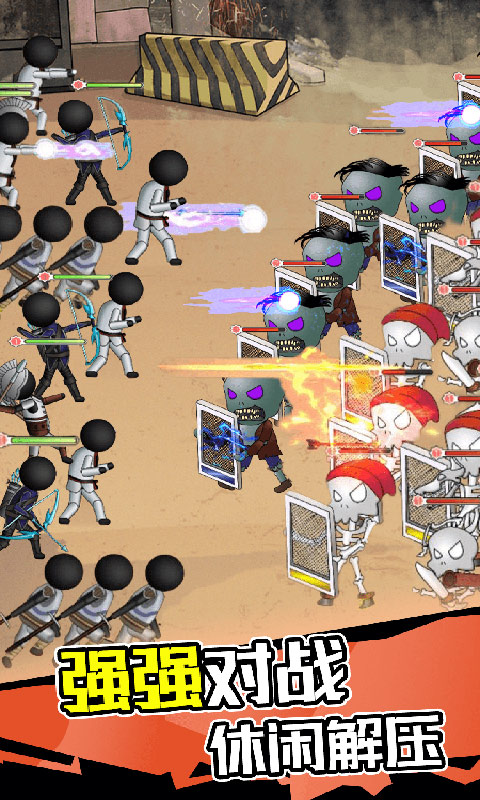 《僵尸激斗火柴人》是一款以僵尸为题材的经典火柴人战争动作游戏。玩家将组建自己的火柴人军团,投身激烈的僵尸战场,抵御一波波来袭的敌人。游戏提供丰富的武器装备系统,玩家可以轻松解锁各类强力武器,通过策略部署和战术搭配,带领军团走向最终胜利。简洁清新的画面风格搭配紧张刺激的战斗玩法,让玩家体验独特的火柴人战争乐趣。