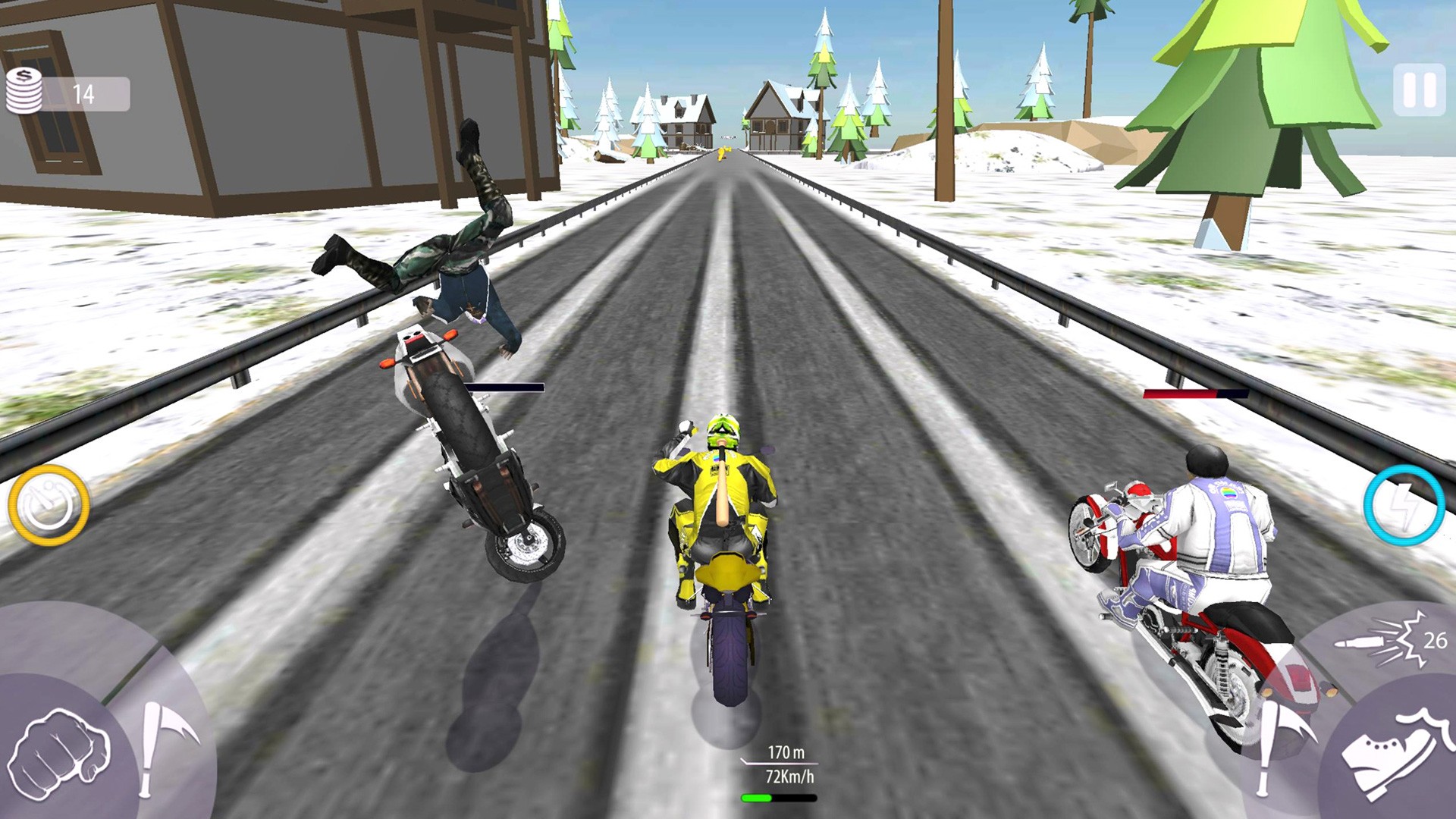 1.通过摇动手机来控制摩托车的方向,也可以控制加速或刹车。要小心避开路上的车辆。游戏提供了多种操控方式,除了传统的触屏操作外,还支持重力感应和手柄操作。玩家可以根据自己的习惯选择最适合的操作方式,享受最舒适的驾驶体验。