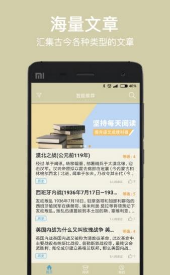 1、采用前沿的深度学习技术,能够对海量内容进行智能分析和自动分级处理,确保每篇文章都能精准匹配用户的阅读水平。系统会持续优化推荐算法,为用户提供最适合的学习材料。