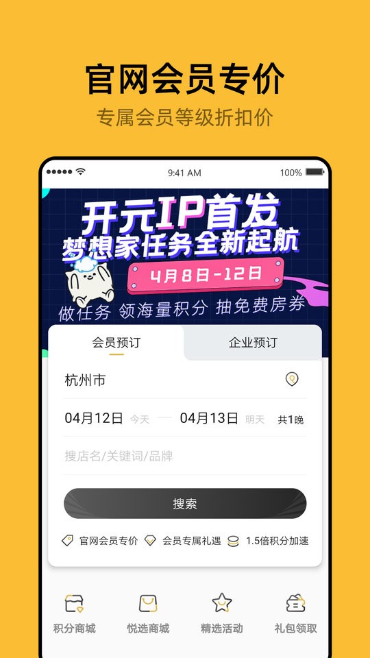 开元商祺会是开元酒店集团倾力打造的会员服务平台,整合了集团旗下所有酒店资源,为用户提供全方位的商旅服务。除了基础的客房预订功能外,平台还创新性地推出了积分多重玩法:会员可通过预订累积积分,这些积分既可直接抵扣房费,也能在积分商城兑换各类精美礼品,更有机会参与积分抽奖赢取豪华住宿体验。平台还特别注重会员权益,为不同等级的会员提供差异化服务,让每一次消费都能获得超值回报。