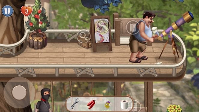 2. 使用道具:游戏提供了丰富的道具,如香蕉皮、假蜘蛛、臭气弹等,玩家可以根据场景和邻居的反应选择合适的道具。道具的使用时机和位置将直接影响恶作剧的效果,玩家需要灵活运用。