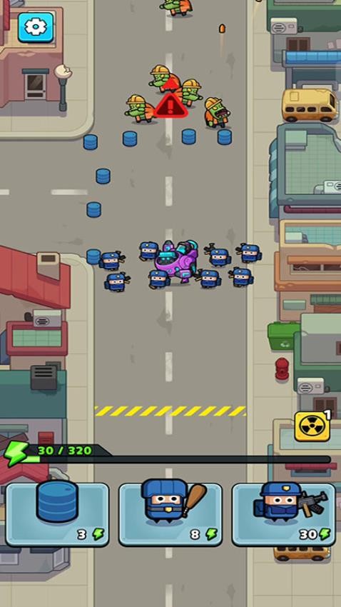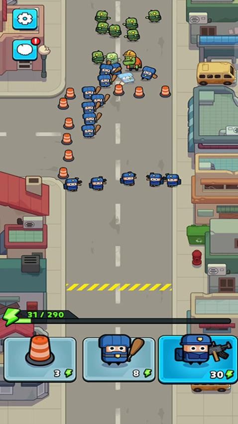 游戏精心设计了两种特色兵种:机枪队擅长远程火力压制,木棍队则具备近战格斗优势。玩家需要根据战场形势合理调配两种兵种的比例,机枪队适合在开阔地带建立火力网,而木棍队则能有效阻挡突破防线的零星僵尸。随着游戏深入,玩家还可以通过升级解锁兵种的进阶形态,获得更强大的作战能力。
