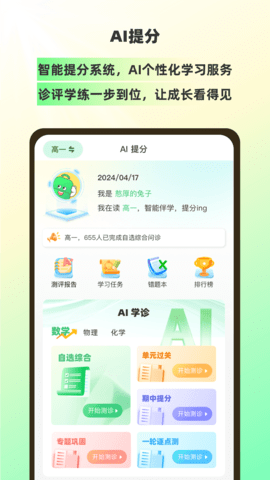2、智能诊断系统会分析学生的错题记录,自动生成专属薄弱点报告,精准推送相关基础讲解、变式训练和考试真题。通过"测-学-练"闭环,确保每个考点掌握牢固,历年用户平均提分达25%。