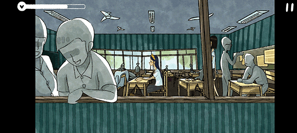 3、游戏采用精美的手绘漫画风格,在细节处理上尤为用心。从角色微表情到场景光影,都经过精心打磨。配乐方面,游戏选用多首原创钢琴曲,将抑郁情绪表达得淋漓尽致,为玩家带来视听与情感的双重震撼。