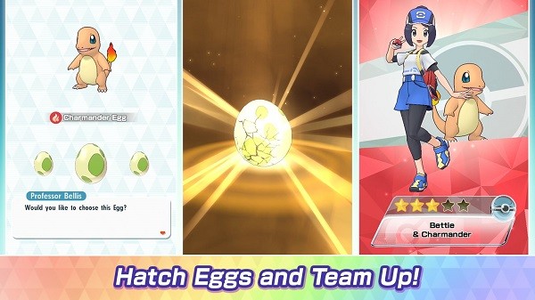 孵化鸡蛋以获取新的神奇宝贝!游戏中提供了丰富的蛋孵化系统,你可以收集各种稀有宝可梦蛋。将孵化的神奇宝贝添加到您的团队中,通过训练提升它们的实力,打造独一无二的强力阵容,在各类比赛中争夺胜利!