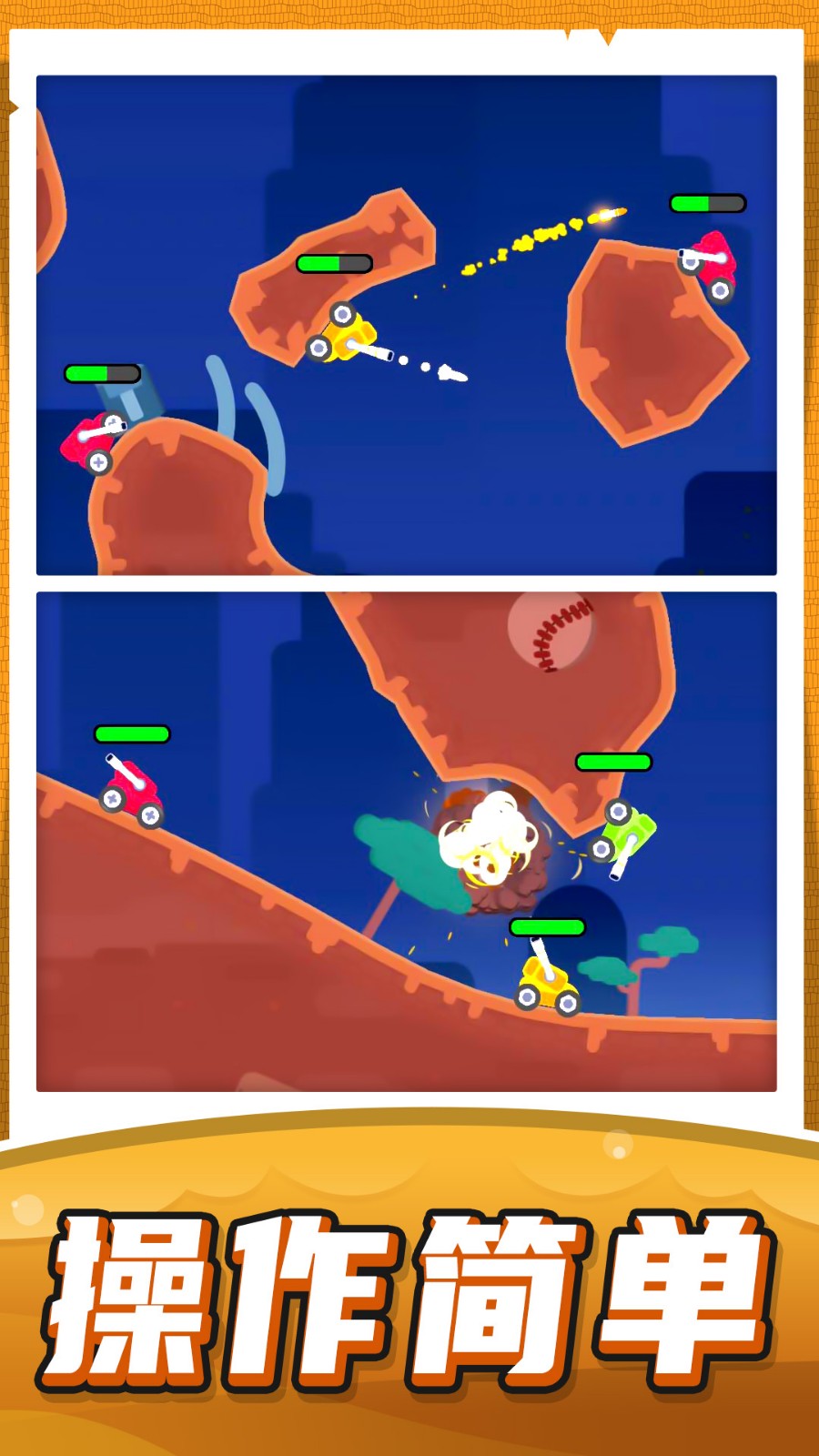 1、双摇杆操控优化:左侧虚拟摇杆控制车身移动,右侧精准调节炮塔转向,独创的"急速瞄准"辅助功能让新手也能快速上手。高级玩家可关闭辅助,体验完全手动操作的硬核射击乐趣。