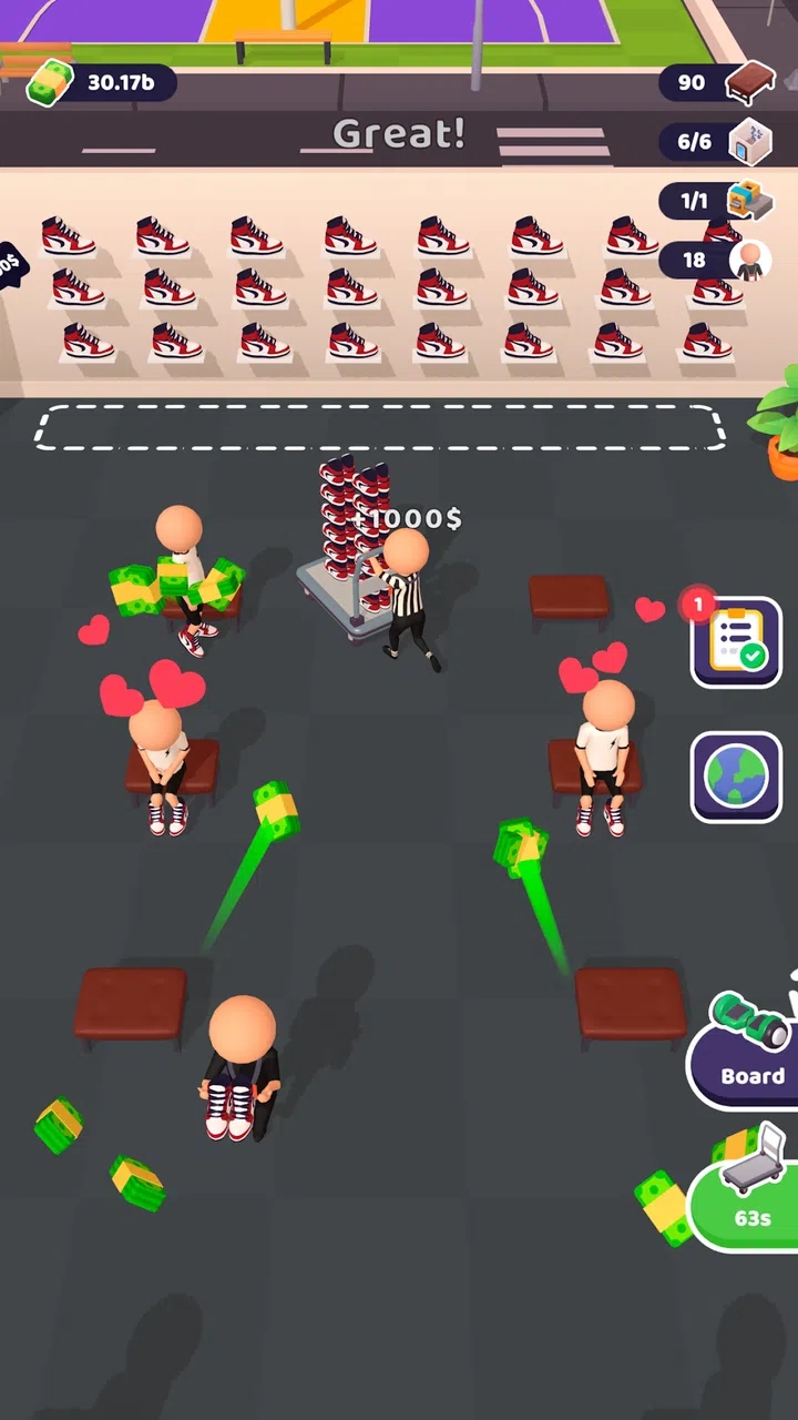 通过精心经营和不断扩建,你可以将最初的小鞋店发展成城市中最受欢迎的运动鞋购物中心。游戏提供了丰富的店铺装修系统,从地板材质到灯光效果都能自由定制,打造独一无二的购物环境。随着店铺规模的扩大,还能解锁稀有鞋款收藏店和VIP贵宾室等特色区域。游戏的经济系统设计非常真实,你需要合理规划资金周转,在进货、宣传和装修之间找到平衡。特别值得一提的是,游戏还加入了时尚趋势系统,需要玩家敏锐把握市场动向,及时调整商品结构。你的商业决策将直接影响店铺的发展速度和盈利能力。