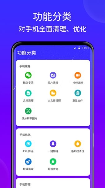 2、【CPU降温】手机发烫快速降温,保护手机寿命;智能温控系统会监测CPU负载,自动关闭高耗能进程。提供多种降温方案选择,从软件层面有效缓解手机过热问题,延长硬件使用寿命。