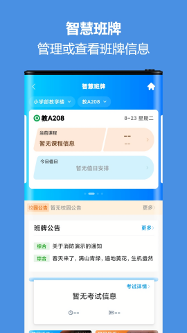 智慧校园通是一款专为现代教育场景设计的综合性App,集成了校园一卡通、智能班牌、餐饮服务、设备监控等多项实用功能。该应用通过智能化手段连接教师、学生和家长三方,实现校园信息的即时共享与高效沟通。特色功能包括官方网站资讯直达、即时消息推送、在线互动交流等,能够快速传递各类通知公告,优化工作流程。无论是日常教学管理还是校园生活服务,都能通过这款App轻松完成,大大提升了校园管理的智能化水平和运行效率。