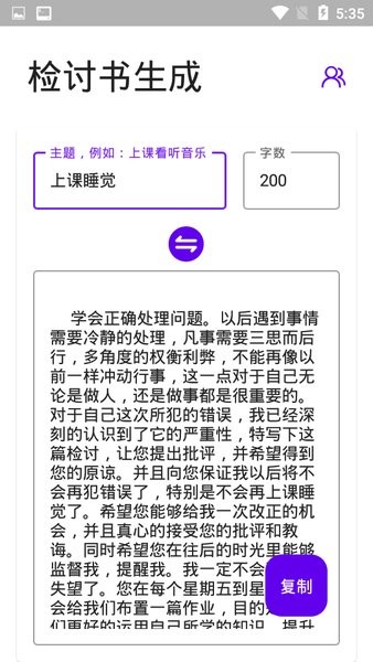1、采用极简主义设计风格,操作流程清晰明了,通过智能算法生成结构严谨、内容充实的优质检讨书。2、内容库实时同步网络热点,能根据最新社会事件自动生成相关案例参考,保证检讨内容的时效性。3、提供性别化写作模板,区分男版女版不同表达风格,同时支持自定义内容修改,确保检讨书的个性化呈现。