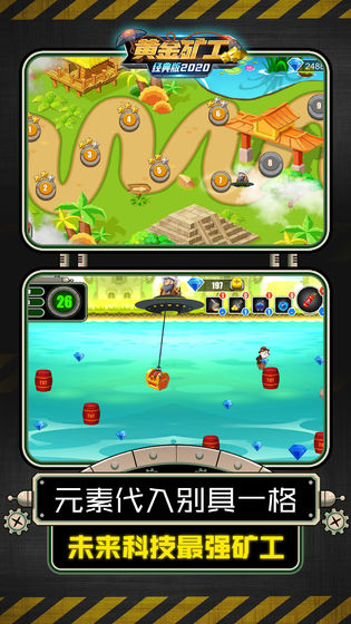 1、经典玩法再次回归,跟随老矿工开启全新的旅程。游戏剧情模式包含完整的故事线,玩家将协助老矿工寻找失踪的探险家女儿。沿途会遇见各具特色的NPC,如地质学家、古董商人等,他们的支线任务会奖励独特采矿装备。