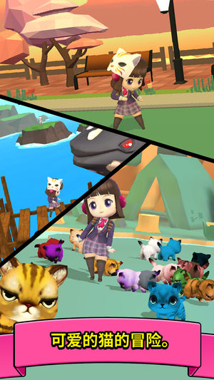 3、风格柔和可爱 游戏中的猫咪和角色都Q版可爱,让人欲罢不能。美术风格融合了日系和欧式卡通的特点,色彩明亮活泼。角色设计充满个性,每只猫咪都有独特的造型和性格特征。