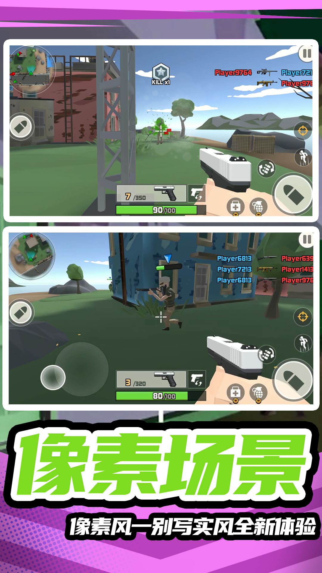 《模拟战场英雄2》是一款充满刺激的像素风格大逃杀游戏。玩家将在广阔的地图中搜集装备、解锁强力武器,与敌人展开激烈对抗,最终成为战场上的最后幸存者。游戏提供多样化的地图场景和丰富的射击挑战,让玩家体验紧张刺激的战斗乐趣。无论是新手还是老玩家,都能通过简单的操作和自动瞄准系统快速上手,享受酣畅淋漓的射击快感。