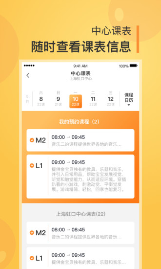 中心课表:智能同步线下课程安排,支持多中心课表管理,实时提醒上课时间;