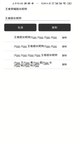 王者重复名功能可以帮助玩家快速生成与他人重复的昵称,轻松打造独特的游戏ID。花式爱心昵称则支持添加各种特殊符号和爱心元素,让你的昵称更加个性可爱。超长昵称功能突破游戏限制,允许玩家使用超长字符组合,展现与众不同的风格。国服图标功能提供多种精美的国服标志,玩家可以自由选择并应用到游戏中,彰显自己的实力与荣誉。