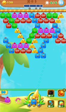 1、滑动屏幕瞄准并发射泡泡,通过精准操作将泡泡射向合适位置,掌握反弹技巧可以命中难以直接射击的区域;