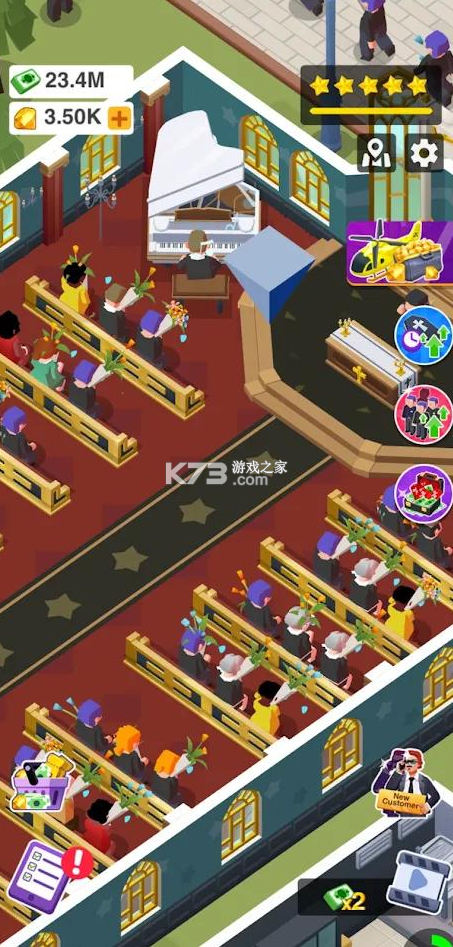 《空闲的殡仪馆》是一款创新的闲置经营游戏,玩家将扮演殡仪馆经营者,从一家小型墓地开始创业。通过合理规划场地布局、雇佣专业员工、升级服务设施,逐步扩大经营规模。游戏采用轻松放置的玩法,即使离线也能持续获得收益。随着等级提升,玩家可以解锁更多建筑类型和装饰物品,打造独具特色的殡仪馆。游戏还融入了丰富的剧情故事,让经营过程更具代入感。简单直观的操作方式,搭配多样化的经营策略,为玩家带来别具一格的模拟体验。