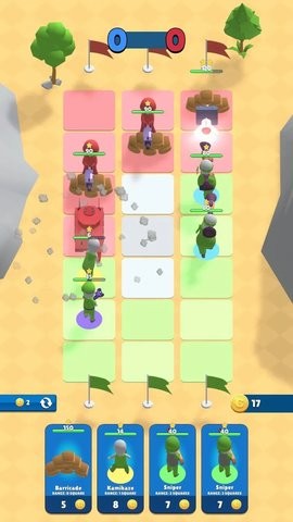 《征服旗帜》是一款融合卡牌收集与实时策略的战争竞技游戏。在这个充满战术博弈的世界里,玩家需要通过金币系统招募各具特色的士兵卡牌,在动态战场上巧妙排兵布阵。游戏创新性地将领土争夺与旗帜插旗机制相结合,每场对战都是智慧与运气的双重较量。您需要精准计算资源消耗,灵活调整部队配置,在瞬息万变的战局中寻找突破口。随着战线的推进,看着自己的旗帜逐渐覆盖整个地图,将带给您无与伦比的战略成就感。游戏采用清新明快的卡通画风,搭配深度策略玩法,既适合休闲娱乐也能满足硬核玩家的竞技需求。