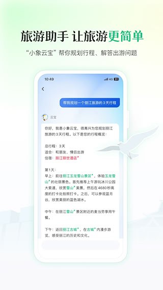 1、一站式旅游服务:平台打造了完整的旅游服务生态,覆盖行前规划、行程中体验、行后服务的全流程。从信息查询到产品预订,从导航导览到售后保障,为游客提供无缝衔接的服务体验,真正实现"一部手机游云南"的便捷理念。