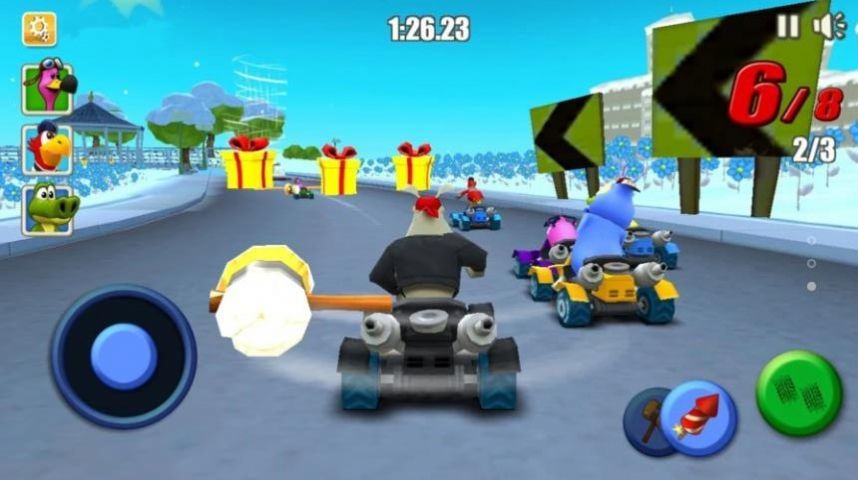 2、游戏中提供了丰富的道具系统,包括氮气加速、防护罩等特殊装备,合理使用这些道具可以让你在关键时刻反败为胜。同时,游戏还会定期更新限时道具,保持游戏的新鲜感。