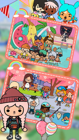 1、游戏中精心设计了发廊、学校、厨房、超市、游乐场等多种生活场景地图,超过一百个特色区域等待玩家探索。每个场景都充满互动元素,让玩家在虚拟世界中体验真实生活的各种乐趣。从清晨上学到夜晚娱乐,完整的生活循环让游戏体验更加丰富有趣。