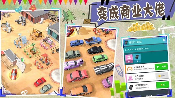 在《商业城市大亨》这款游戏中,你将扮演一位怀揣梦想的汽车工厂创业者,从回收废弃汽车起步,逐步发展成行业巨头。游戏精心设计了多个不同规模的工厂场景,从简陋的修理车间到现代化流水线应有尽有。随着游戏进程,你将解锁更多经营要素,包括原材料采购、技术研发、市场拓展等丰富内容。游戏采用独特的双线经营系统,既需要关注工厂内部的运营管理,又要把握市场机遇进行商业决策。通过不断优化经营策略,你将体验到从默默无闻到行业领袖的完整成长历程,最终实现成为世界首富的终极目标!
