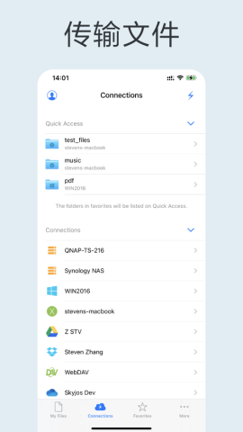 2、通过SMB协议直接连接PC、Mac和NAS上的共享文件夹,完美支撑NFS、WebDAV、FTP和SFTP等服务。它也无缝连接云存储服务,包括百度网盘、AmazonS3、Dropbox、OneDrive、GoogleDrive和Box,让您随时访问USB驱动器和SD卡。特别值得一提的是,其批量传输功能可同时处理上百个文件,传输速度比普通方式快3倍以上。