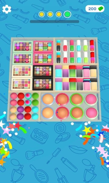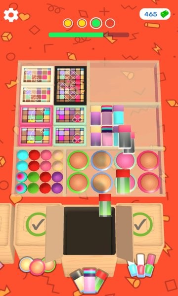 2.玩家的任务是通过不断的整理化妆品,将它们按照顺序逐一开出去,解决桌面凌乱的问题。新增限时挑战模式,考验玩家在压力下的快速决策能力