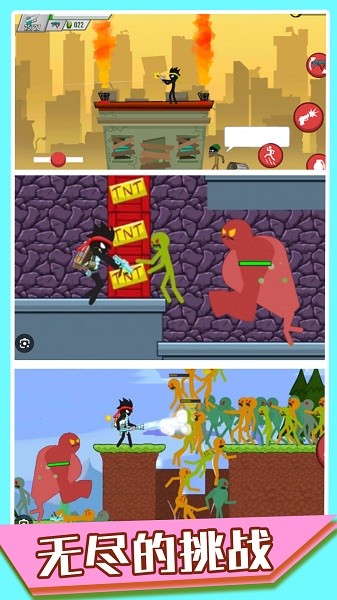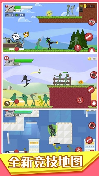 3、游戏包含多个风格迥异的场景,玩家可以在不同环境中展开战斗。通过不断击败对手,玩家可以提升自己的实力,最终成为无敌的火柴人战士。