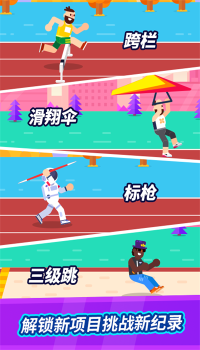 全能运动会是一款充满激情的体育竞技类游戏,在这里你将体验到前所未有的运动盛宴。游戏精心设计了多种真实的运动项目,从短跑到标枪,从游泳到滑翔伞,每个项目都经过专业模拟,带来身临其境的竞技体验。简单直观的操作方式让新手也能快速上手,而丰富的挑战关卡则能满足资深玩家的需求。通过不断练习和比赛,你将从一个默默无闻的运动员成长为闪耀赛场的全能冠军。现在就加入这场运动狂欢,展现你的体育天赋吧!
