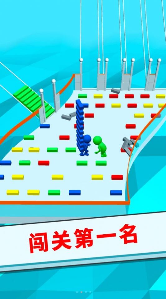 5、游戏地图设计巧妙,充满各种机关和陷阱。你需要不断奔跑前进,同时收集足够的木板来搭建桥梁。每座桥梁的搭建位置和时机都至关重要,直接影响你的比赛成绩。