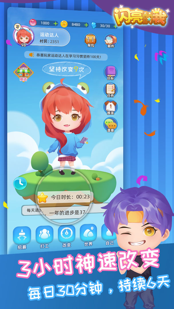 《闪亮的我》开创性地将游戏机制与行为心理学相结合,打造出全球首个"游戏式行动"系统,帮助玩家粉碎拖延症。通过"互助式成长"模式,玩家之间可以相互激励,传递正能量。最特别的是"被动式交友"功能,让你体验明星般的生活,收获真实粉丝的关注与支持。这些创新设计让自我提升变得轻松有趣,告别枯燥乏味的传统方式。