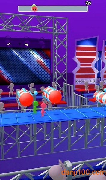 1、场地中会有很多的障碍物,他们会给你很大的阻碍,所以你必须控制的很好。游戏中的障碍设计极具创意,从旋转的锤子到突然出现的路障,每个都考验着玩家的反应能力。