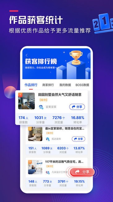 装修获客宝App是一款专为装修行业量身定制的智能营销工具,旨在帮助装修企业突破传统获客瓶颈,实现精准营销与高效转化。通过整合短视频推广、3D案例展示、智能报价系统等前沿技术,该软件能够为装企搭建全方位的线上营销矩阵。无论是初创公司还是成熟企业,都能借助其强大的数据分析功能,实时追踪客户来源、转化率等核心指标,让每一分营销投入都获得可量化的回报。操作界面简洁直观,即使是非技术人员也能快速上手,是装企数字化转型的得力助手。