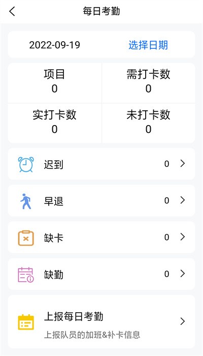 2.智能考勤系统精准记录打卡状态,实时显示正常、迟到、早退、缺卡等考勤数据,并支持月度统计报表导出。